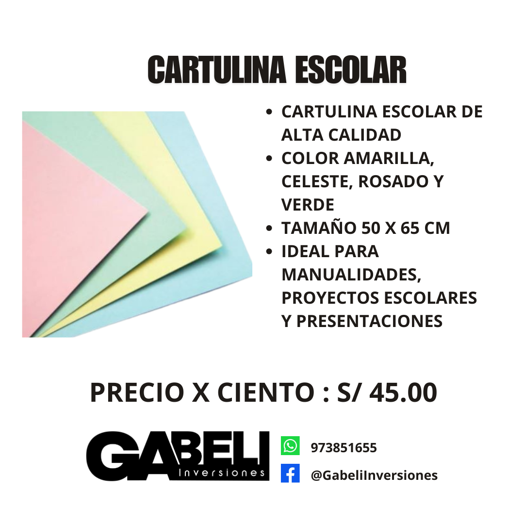 CARTULINA ESCOLAR DE ALTA CALIDAD